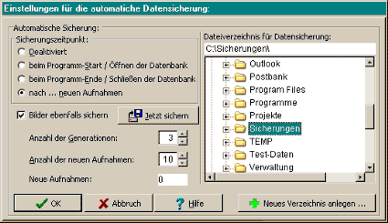 Alternativ besteht die Möglichkeit das Programm anzuweisen, nach einer bestimmten Anzahl von neuen / geänderten Aufnahmen die Datensicherung durchzuführen.